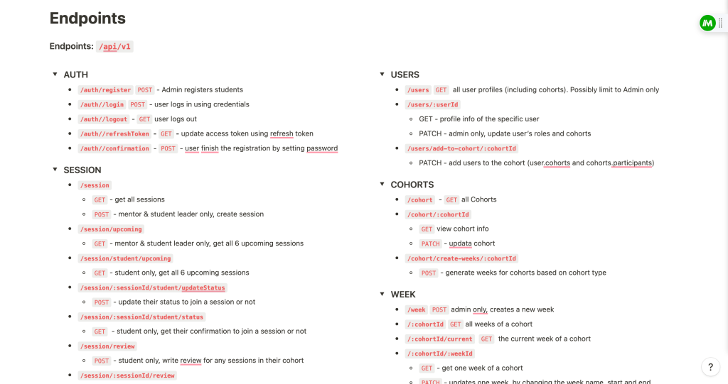 MentorUp Class Management MVP Design